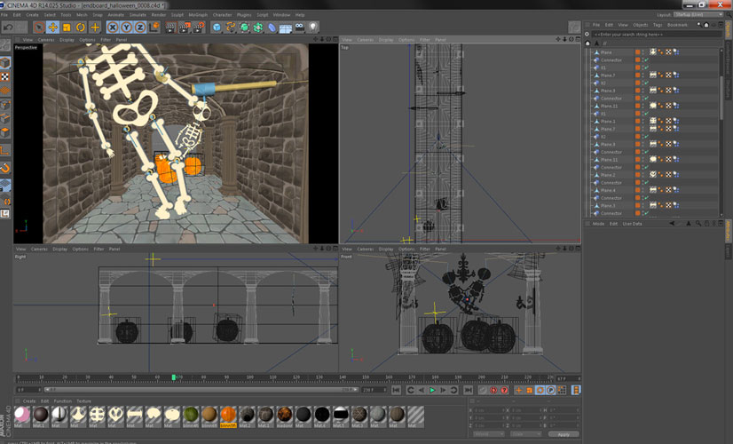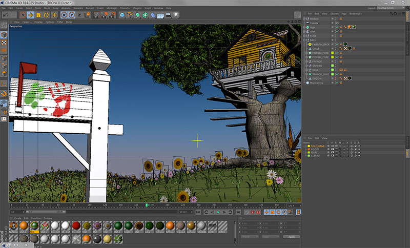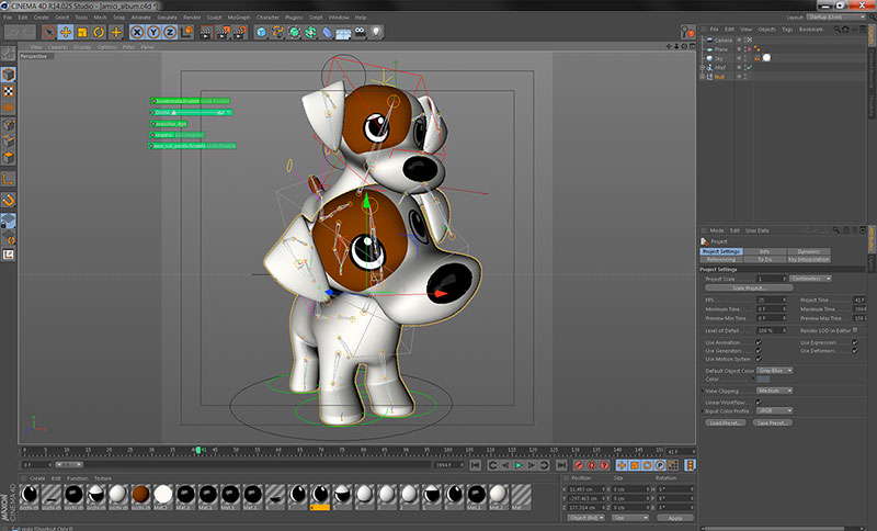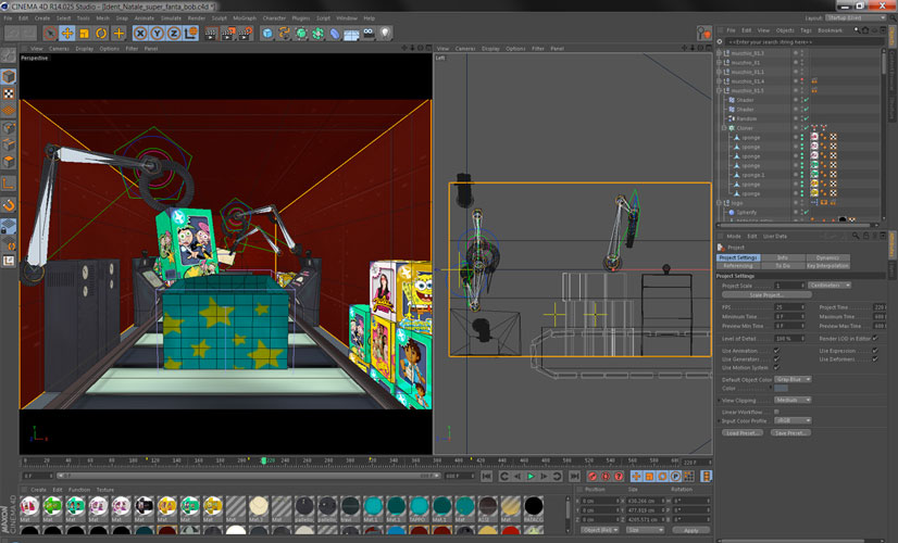Il software di riferimento è ovviamente Cinema 4D , da cui Giorgio è migrato nel 2004-2005 , che gli ha permesso di lavorare nei tempi televisivi richiesti. Cinema 4D gli ha permesso di fatto di allontarsi gradualmente da Softimage. Un saluto al nostro caro Giorgio - Jabba - Macellari personale è d'obbligo , lasciandovi video e screenshot relativi agli idents dei programmi televisivi di cui si occupa.