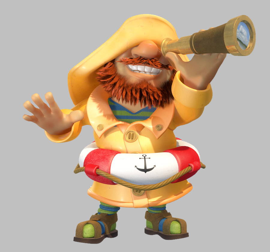 Il personaggio principale, il capitano, è tutto cappello, denti e barba. Fortunatamente, proprio l'eccellente modulo Hair integrato all'interno di CINEMA 4D ha offerto un ottimo ed efficiente modo di crearne il look. Lo styling del capitano e l'atmosfera dell'animazione in generale sono stati sviluppati attraverso schizzi dei personaggi e grazie ai feedback dell'agenzia pubblicitaria per la quale Streetmonkey ha prodotto l'annuncio. Ian aggiunge: "Abbiamo voluto piazzare l'animazione da qualche parte tra la moderna animazione 3D e un feeling nostalgico, con personaggi tosti e ambienti che sembrano quasi fatti a mano."