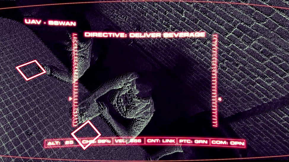 Anche se Ieyoub si era esercitato un pò nel suo salotto, nel giorno delle riprese il drone dopo il decollo è volato dritto verso il soffitto prima di schiantarsi a terra andando in pezzi! "E' stata una cosa del tipo: Oh mio Dio! Devo trovare il modo di creare questo effetto in CINEMA 4D adesso!" ricorda ridendo. Dopo aver scovato un modello gratuito online di un AR.Drone Parrot, ha "Frankensteinizzato" il modello di Parrot AR.Drone con un modello di giocattolo con artiglio meccanico per creare il proprio drone UAV (unmanned aerial vehicle).